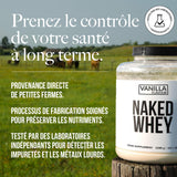 La protéine Naked Whey Vanille provient de petites fermes laitières sans OGM. Nos vaches sont nourries à l'herbe... Plus d'informations